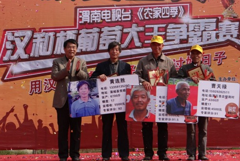 “漢和杯”葡萄大王爭霸賽頒獎盛典隆重舉行2013年10月24日上午,由渭南市電視臺《農(nóng)家四季》欄目主辦,上海漢和農(nóng)業(yè)生產(chǎn)資料有限公司、渭南市道禾農(nóng)業(yè)生產(chǎn)資料有限公司聯(lián)合協(xié)辦的“漢和杯”葡萄大王爭霸賽詳情>>