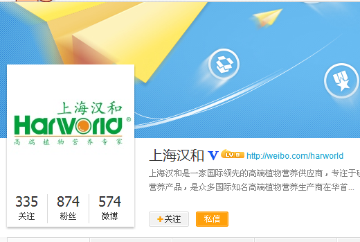 漢和生物官方微博正式啟用9月初,在通過新浪的“企業(yè)認(rèn)證”后,上海漢和農(nóng)業(yè)生產(chǎn)資料有限責(zé)任公司的官方微博(http://weibo.com/harworld)正式落戶新浪。該微博將成為漢和生物對(duì)外發(fā)布官詳情>>