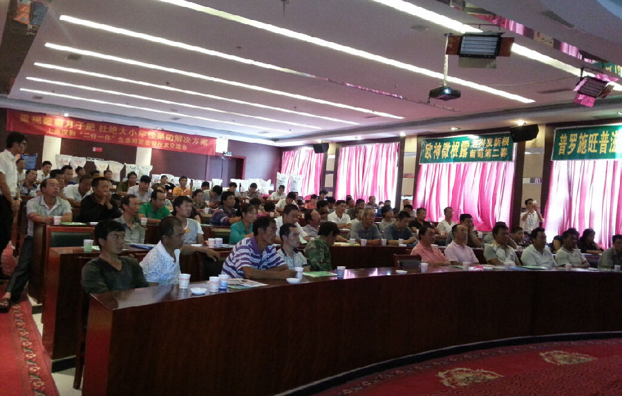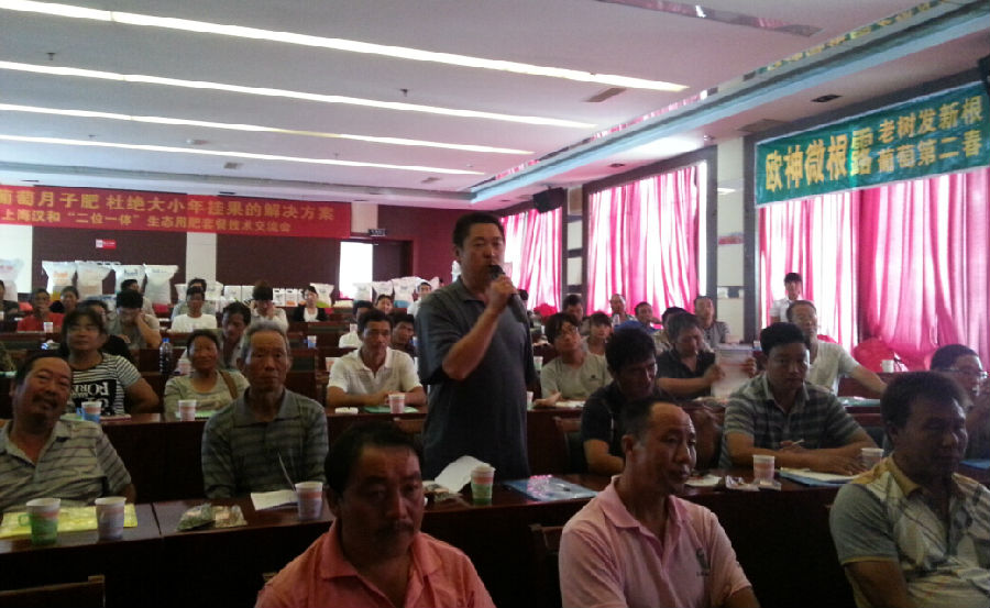 農(nóng)業(yè)部規(guī)劃設計研究院高級農(nóng)藝師、中國植物營養(yǎng)與肥料學會理事、漢和生物特聘農(nóng)化專家呂運教授為在座種植戶及零售商講解“重視月子肥,杜絕大小年掛果的解決方案”。在場種植戶就葡萄種植踴躍提問,更有種植大戶分享使用上海漢和產(chǎn)品獲豐收的感受,互動參與熱情高漲。會后農(nóng)民朋友反響熱烈,紛紛表示交流會內容通俗易懂并且切實解決了他們種植過程中遇到的問題。