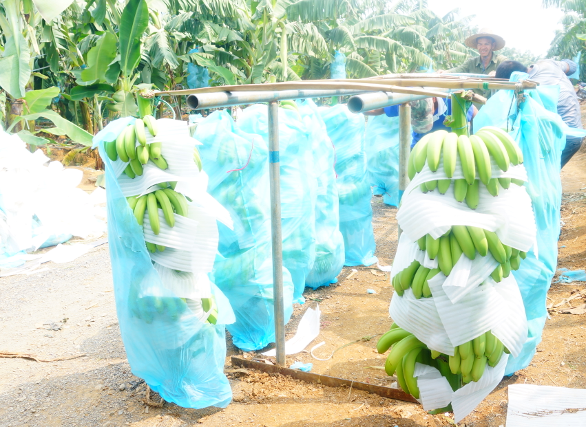 “今年能有這么好的收成,種出這么好的香蕉,我要好好感謝上海漢和,感謝上海漢和一年來在產(chǎn)品和技術方面給予豐湖的鼎力支持”,提到這塊香蕉基地所用的肥料,盧春能打開了話匣子,“從5月份開始全程使用上海漢和微根露、美加健、普滋素、歐護等產(chǎn)品套餐,微根露放在前期使用,效果你們都看到了,香蕉樹采收后葉子還是綠的;后期就用普滋素對土壤補充中微量元素,用歐護防裂果,今年裂果現(xiàn)象基本上沒有了!”
