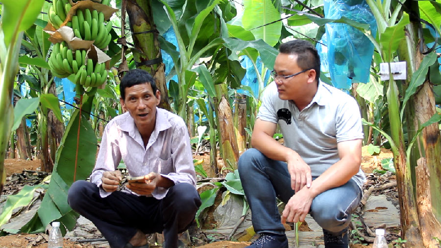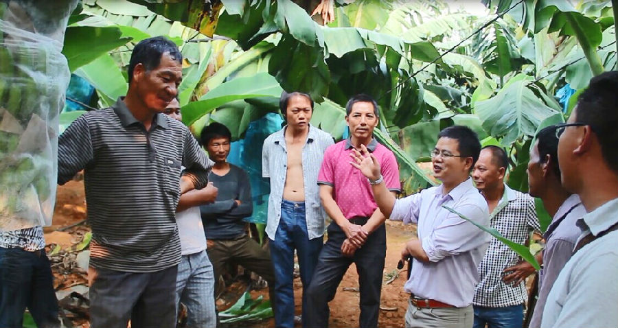 “他(陸海斯)過去三年種香蕉就是失敗,沒有哪一年種好過;可是今年,在我們這里,四周圍都以他為榜樣,都跑過來幾趟,想學(xué)一學(xué)他是怎么做的”。