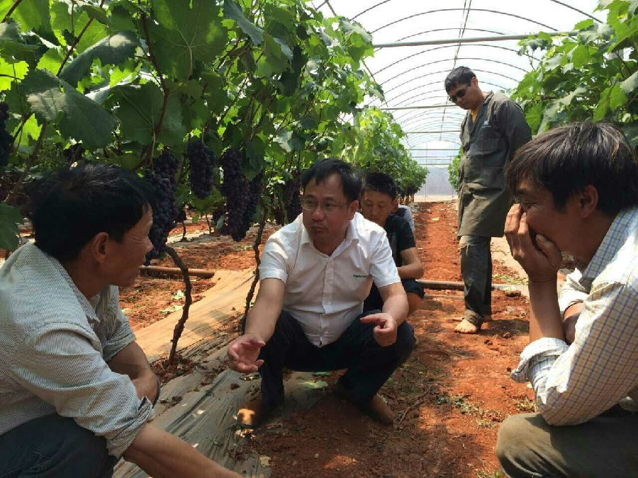 云南省紅河州建水縣擁有不可多得的葡萄生長所需的自然資源條件,目前葡萄種植面積10萬余畝,近日,受廣大種植戶邀請(qǐng),漢和生物特聘農(nóng)化講師呂運(yùn)教授前往此地解決葡萄栽培過程中碰到的,例如花芽退化、水肥管理、大小果等問題,實(shí)地指導(dǎo),為農(nóng)戶提供實(shí)實(shí)在在的服務(wù)。