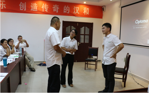 會議第三天,與會人員分成兩隊,戰(zhàn)狼隊和先鋒隊展開對決,進行現(xiàn)場對白演練并安排了產(chǎn)品考試。