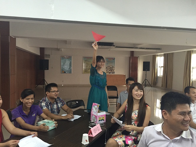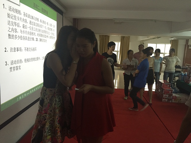 培訓(xùn)結(jié)束后,開(kāi)展了豐富多彩的團(tuán)隊(duì)活動(dòng),如檢視產(chǎn)品知識(shí)了解程度的"質(zhì)量知識(shí)搶答",檢視工作默契程度的“你比我猜”,檢視在管理過(guò)程中、上級(jí)的工作安排是否得以貫徹落實(shí)的“密室傳音”,檢視在工作過(guò)程中的反應(yīng)能力及持續(xù)改善能力的“圍圈報(bào)數(shù)”等趣味活動(dòng),員工踴躍搶答與參與,現(xiàn)場(chǎng)氣氛熱烈濃郁。