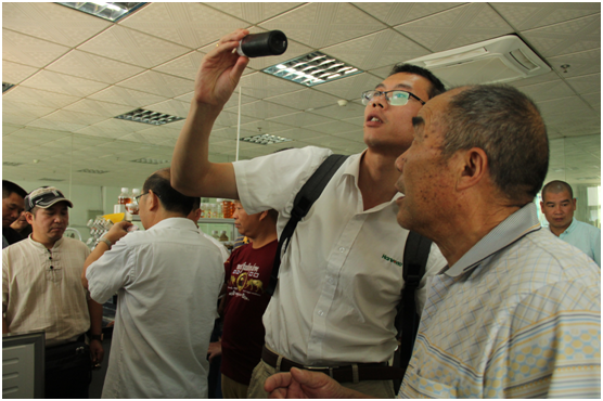 (通過(guò)研發(fā)老師的講解,客戶對(duì)產(chǎn)品研發(fā)的基礎(chǔ)流程有了一定了解。漢和產(chǎn)品的研發(fā)要經(jīng)過(guò)多次反復(fù)試驗(yàn),配方必須經(jīng)過(guò)負(fù)二十?dāng)z氏度的冷儲(chǔ)和五十?dāng)z氏度的熱儲(chǔ)試驗(yàn),確保冷儲(chǔ)不結(jié)晶、熱儲(chǔ)不沉淀分層,且添加的有機(jī)營(yíng)養(yǎng)成分穩(wěn)定。配方穩(wěn)定后,通過(guò)大量試驗(yàn)示范驗(yàn)證效果最佳,產(chǎn)品才會(huì)量產(chǎn)推向市場(chǎng)。 此外,研發(fā)人員對(duì)公司新近研發(fā)的幾款處于領(lǐng)先地位的懸浮型肥料也做了介紹,客戶表現(xiàn)出濃厚興趣。)