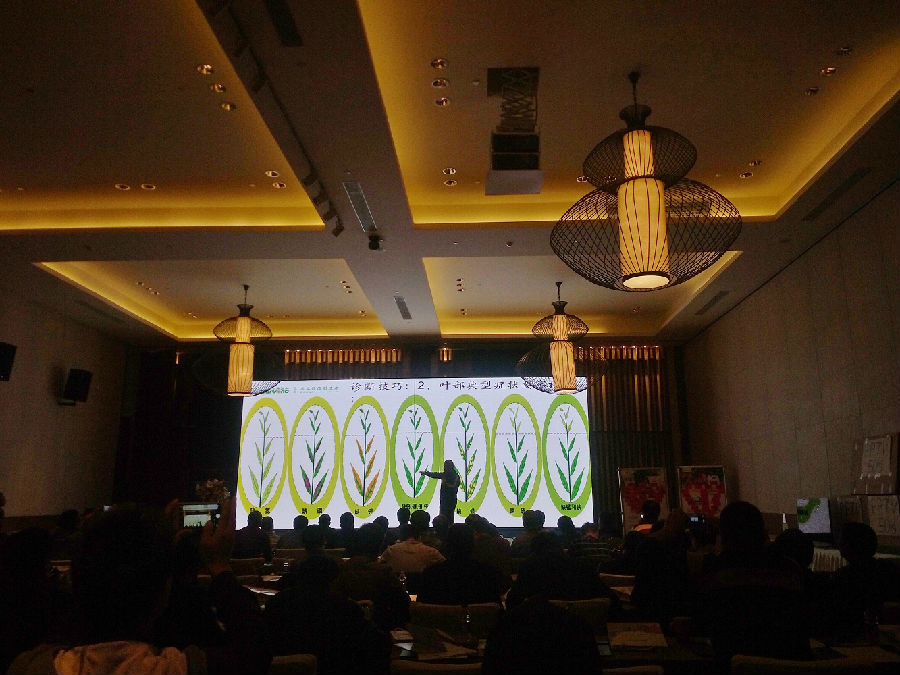 華北大區(qū)營銷總監(jiān)馬高升作《作物營養(yǎng)及缺素癥狀》授課講解。作為全國知名的技術營銷實戰(zhàn)派高手,馬老師的每一張課件分享,都能引得在場觀眾拍照留存,導致原計劃1小時的講課延長了10余分鐘,至結(jié)束時,大伙還意猶未盡。