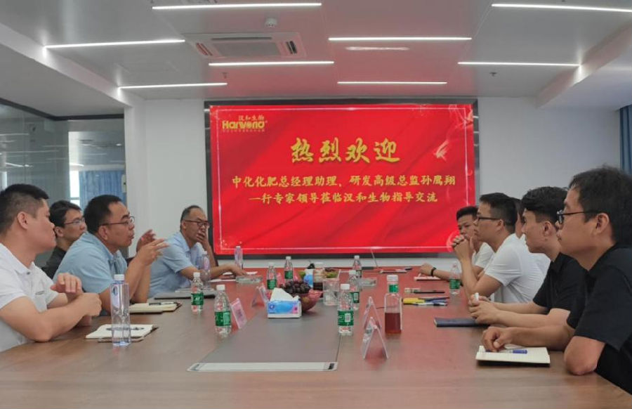 基于中化化肥與漢和生物在生物基增效劑的長期戰(zhàn)略合作,2023年8月1日-2日,中化化肥總經(jīng)理助理、研發(fā)高級總監(jiān)孫鷹翔,中化臨沂農(nóng)業(yè)研發(fā)中心研發(fā)副總監(jiān)劉巍,中化臨沂農(nóng)業(yè)研發(fā)中心主任助理魏延青,中化臨沂農(nóng)業(yè)研發(fā)中心高級研發(fā)經(jīng)理呂濟敏蒞臨漢和生物開展項目交流工作。