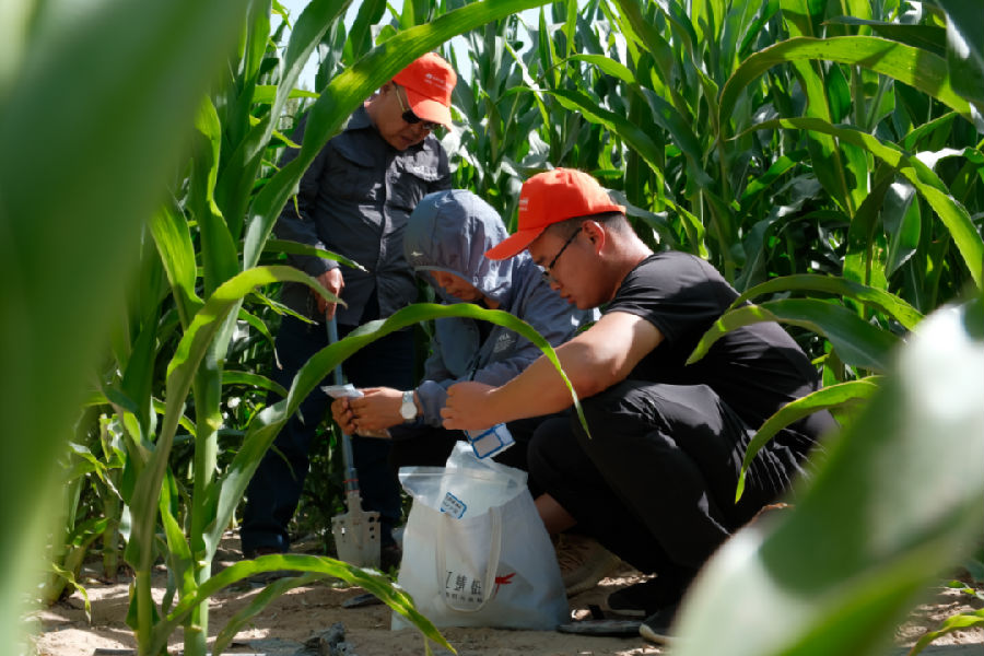 科考隊(duì)員在此采集了玉米、甜瓜、小麥、茴香、苜蓿、食葵、洋蔥、苦苣菜、蓼子樸、地膚、迷迭香、草木樨、甘草等作物的根際土壤及植株樣本。采樣途中,科考隊(duì)員們相互交流探討微生物在土地改良中的作用機(jī)理,并沉醉其中。