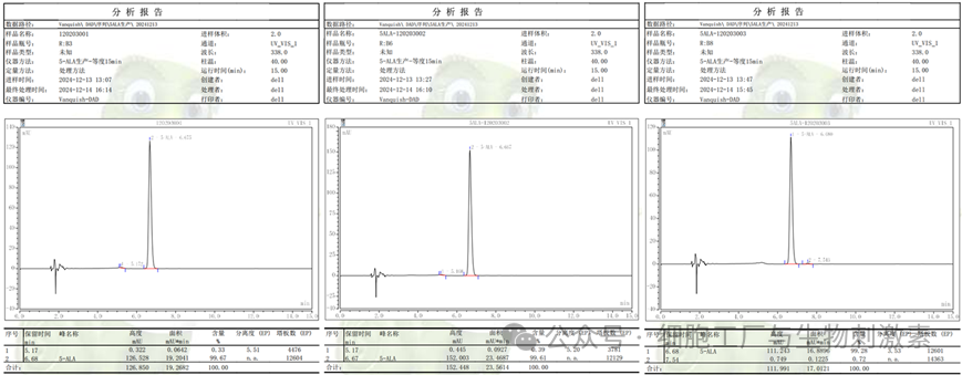 2024年12月中旬,南寧漢和在在中試水平穩(wěn)定達(dá)到標(biāo)準(zhǔn)品級別后的十天內(nèi),實(shí)現(xiàn)含量99.99%以上的5-ALA量產(chǎn)!