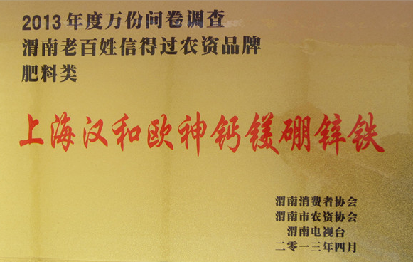 歐神鈣鎂硼鋅鐵、普羅施旺硫酸鉀獲老百姓信得過(guò)農(nóng)資品牌2013年4月25日,由渭南電視臺(tái)、渭南市農(nóng)資協(xié)會(huì)、渭南市消費(fèi)者協(xié)會(huì)共同主辦,渭南人民廣播電臺(tái)、華山網(wǎng)全程支持的“第二屆《春風(fēng)里》渭南老百姓信得過(guò)的農(nóng)資品牌評(píng)選授詳情>>