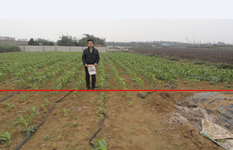效果:使用鈣鎂硼鋅鐵的玉米地中,玉米枝干粗大長勢密集,莖干粗壯有實骨,葉色深綠、葉張厚實。