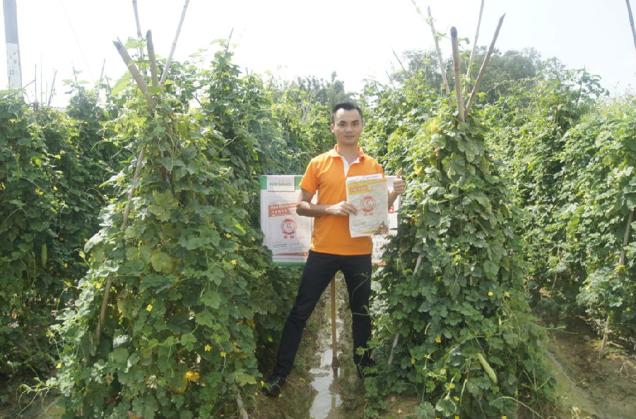 示范效果:示范田苦瓜葉片厚綠、花期不落花,掛果多,果實(shí)膨大快,果型均勻,抗病性強(qiáng)使用后能延長(zhǎng)一個(gè)月的采收期,畝增產(chǎn)1500斤。