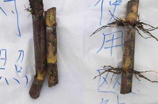 蔗農(nóng)陳家均在自家甘蔗示范田,用2包“歐神”鈣鎂硼鋅鐵混合尿素、鉀肥在3至4葉期撒施(即在底肥或芽肥時使用),一個月后,陳家均發(fā)現(xiàn)示范田的甘蔗行根須快、白根多,且蔗芽粗壯實骨、出苗整齊,他十分滿意!