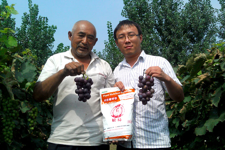 王夕軍是青島平度市門村鎮(zhèn)曲家莊村一位普普通通的農(nóng)民,今年58歲,已經(jīng)種了28年的葡萄了,現(xiàn)在擁有一個(gè)將近10畝的葡萄園。這些年來,雖然葡萄產(chǎn)量很好,但有幾個(gè)問題一直困擾著王夕軍,葡萄根系弱小,后期吸收營(yíng)養(yǎng)困難,常常裂果情況很嚴(yán)重,再就是葡萄的品質(zhì)并沒有隨著產(chǎn)量的提高而提高,這些問題一直困擾王師傅。當(dāng)?shù)乜蛻?/span>技術(shù)人員去葡萄園看了一圈后找到了原因,原來是王夕軍施肥時(shí)只注重氮磷鉀的使用,而忽略了微量元素的使用,導(dǎo)致了葡萄因缺少微量元素而抵抗力下降,這才出現(xiàn)根系弱小、大片裂果和葡萄的口感不好情況。聽了技術(shù)員的指導(dǎo)后,他就到村里、鎮(zhèn)上到處去找“微量元素”,雖然也找到了一些微量元素肥,但使用后效果還是不明顯,裂果依然很嚴(yán)重。在一次和朋友聊天中,他偶然聽到鎮(zhèn)上有一家農(nóng)資超市賣一種英國(guó)進(jìn)口的中微量元素肥,上海漢和公司全國(guó)總代理。剛開始,半信半疑,抱著試試看的態(tài)度買了規(guī)格為2包2公斤規(guī)格歐神鈣鎂硼鋅鐵,在春季施用底肥的時(shí)候就拿出了一畝地做了個(gè)實(shí)驗(yàn)。9月屬于葡萄收獲的季節(jié),他拉著我們的手說:“你們那個(gè)歐神鈣鎂硼鋅鐵中微量元素肥料太神奇了,這一季葡萄根系非常發(fā)達(dá),大量中微量元素促進(jìn)了根系分支,營(yíng)養(yǎng)吸收充分,葡萄不僅僅沒裂果,而且口感非常好,到市場(chǎng)賣價(jià)比一般都貴不少”。