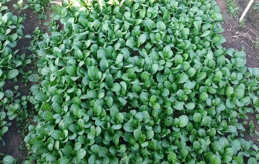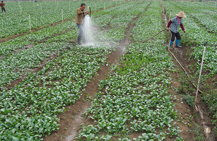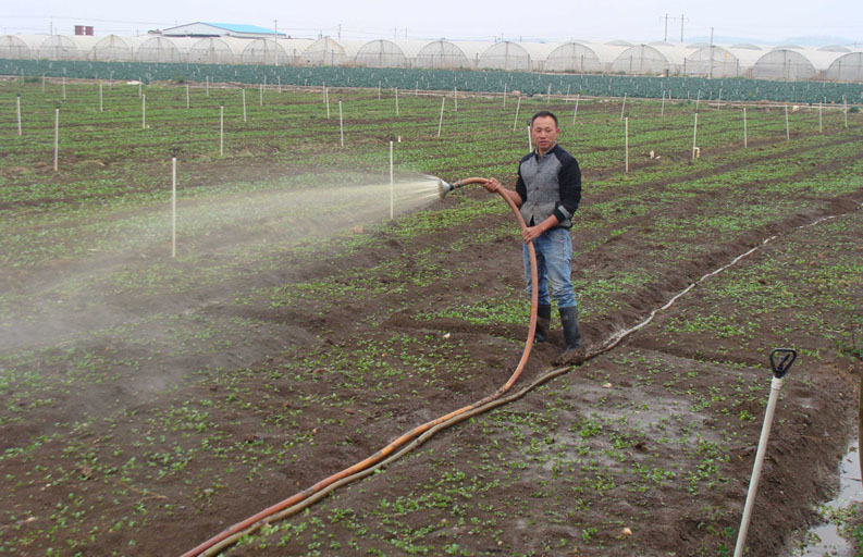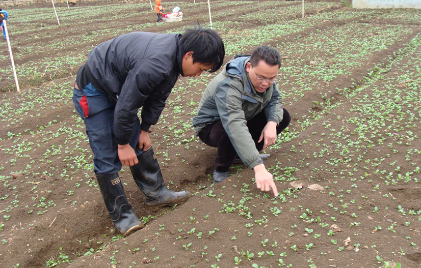 2014年3月21日,在菜心間苗(2-3葉)后,沖施普滋藍、普滋靈