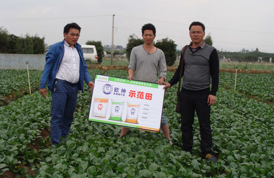 2014年3月,在昆明周邊某大型出口蔬菜基地,在菜心上使用漢和的施肥套餐。具體使用方法和效果如下: