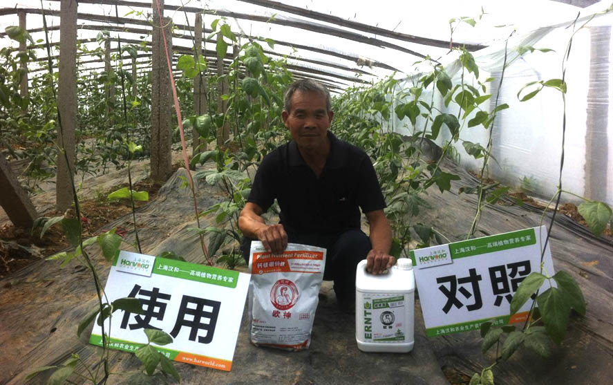 4.示范試驗情況介紹:50ml微根露加100g鈣鎂硼鋅鐵,兌水30斤,灌根70棵,早上剛澆水,并留出對比田。第四天去跟蹤實驗,葉片發(fā)黑,10天去跟蹤實驗,效果更好。