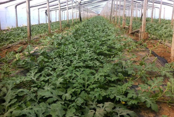 圖1. 施用歐神微根露+歐神美加健產(chǎn)品組合的西瓜,葉色濃綠,長勢強勁;未施用的葉色明顯偏黃。
