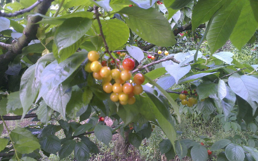 圖1. 施用(歐神微果露1000倍液2次+歐神歐護1000倍液2次)的櫻桃果實提前5-7天成熟,果實色澤紅潤有光澤,裂果減少。