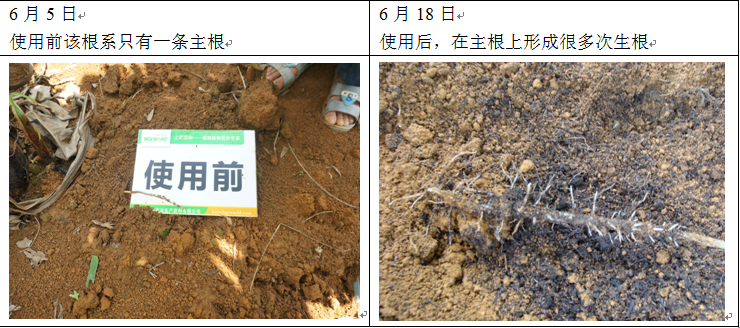 使用前后,上海漢和農(nóng)化技術(shù)人員定點(diǎn)進(jìn)行挖根系觀(guān)察使用前后的區(qū)別。