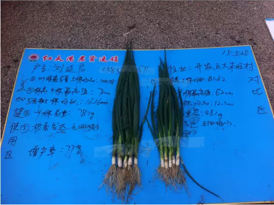 (試驗區(qū)的大蔥比對照區(qū)的大蔥植株高)
