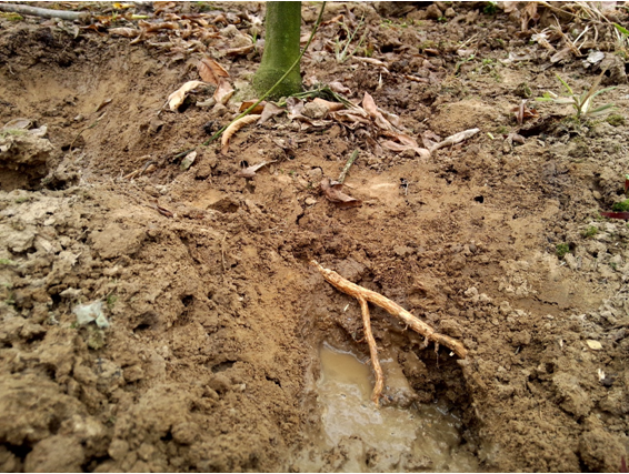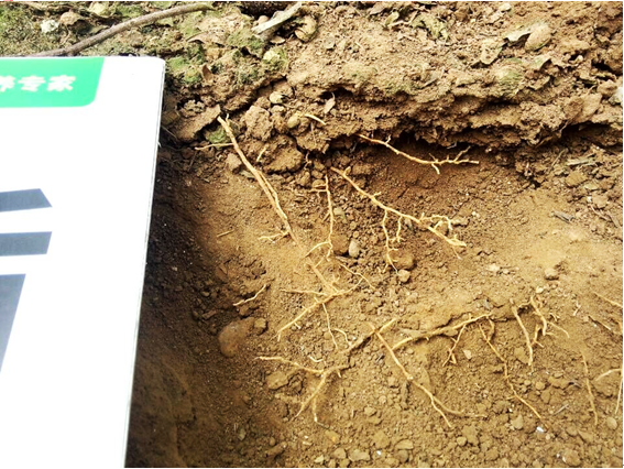 (菌劑灌根處理后,標(biāo)記位置新生根系發(fā)達(dá)!)