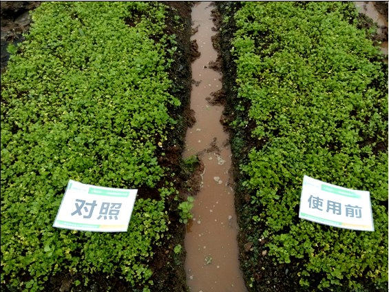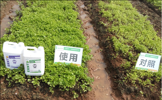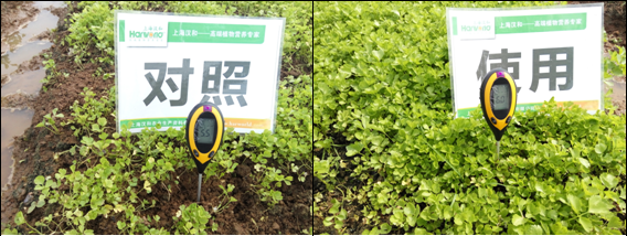 效果說明:芹菜適宜土壤pH為6.0-7.6,對照區(qū)芹菜地偏酸,而使用微生物菌劑+微根露能有效調(diào)節(jié)土壤酸堿性,使pH值趨于正常。