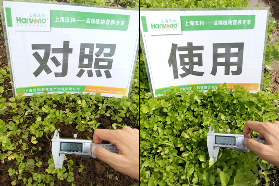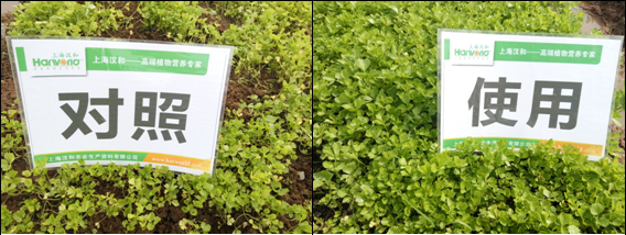 效果說明:相比對照,試驗組芹菜葉片更厚更綠。