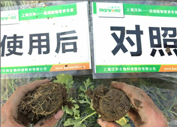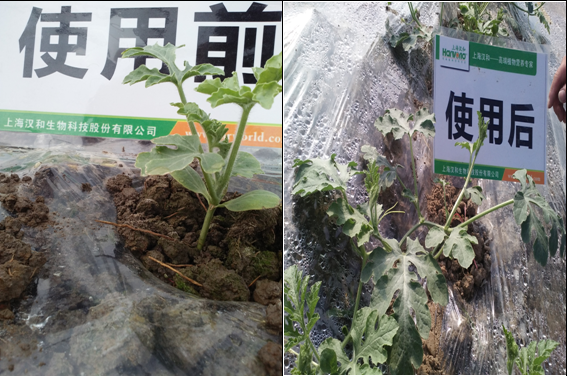 在西瓜移植十天左右,滴灌使用微生物菌劑300倍+微根露800倍,具有以下效果: