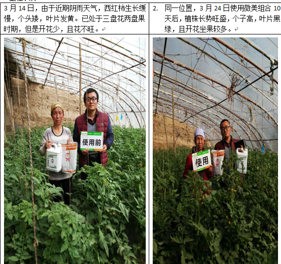 (使用產(chǎn)品后,整棚長勢均勻,蔥郁一片)