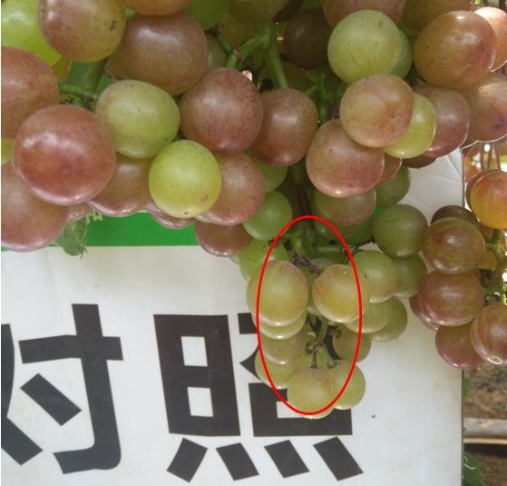 效果說(shuō)明:使用后掛果多但整體表光著色比較整齊,而對(duì)照著色參差不齊。
