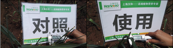 效果說(shuō)明:在大蒜苗期使用歐神微生物菌劑+葉色美能明顯促進(jìn)葉片生長(zhǎng),試驗(yàn)組葉片厚度幾乎是對(duì)照的兩倍。