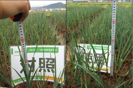 效果說(shuō)明:與常規(guī)對(duì)比,試驗(yàn)組大蒜植株明顯高于對(duì)照,高出400px。